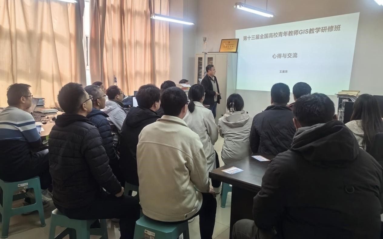 1028日下午,空间信息与数字技术系在6214举行教学沙龙,王星东教授分享参加第十三届全国高校青年教师GIS教学研修班的心得体会。沙龙由系主任刘茜茜主持,空间信息与数字技术系全体教师参加。