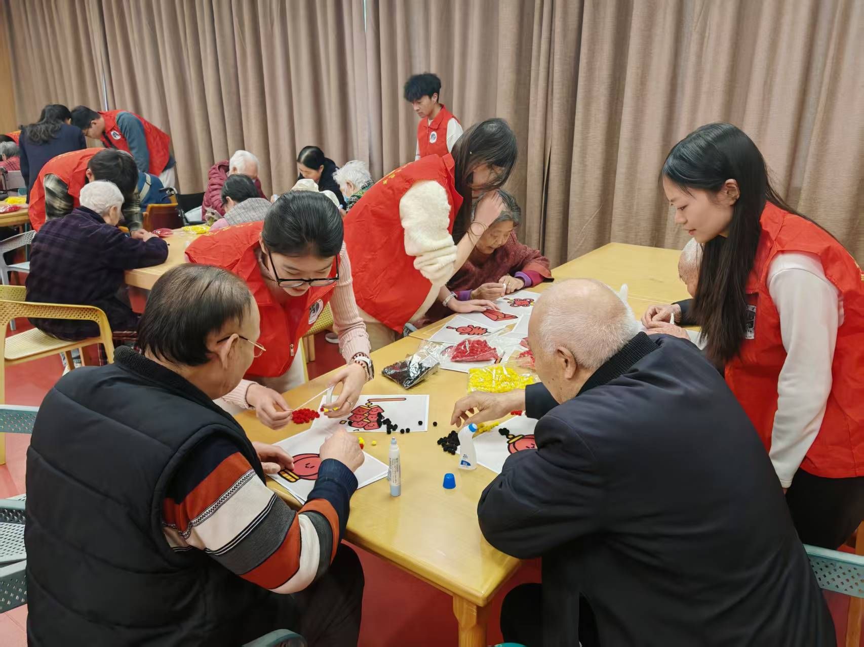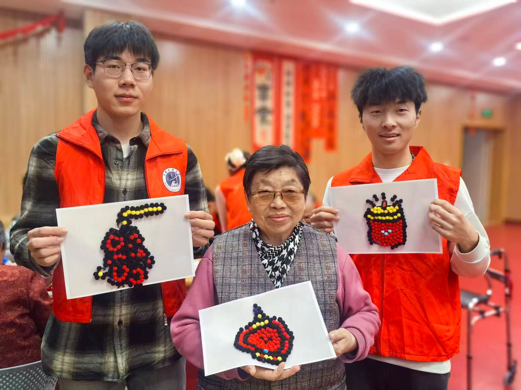 活动第三天,实践团队和老人进行了手工制作活动。有了前两天的材料准备和规划,手工制作活动顺利开展。队员们耐心地帮助老人们完成手工。活动氛围热闹非凡,老人们完成手工后都开心地要跟队员合影留念。活动结束后,队员们打扫活动室的卫生,将活动室恢复原状。