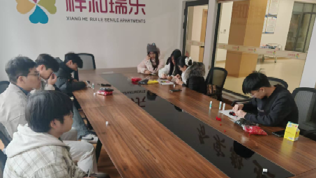 活动第一天,实践团队跟随养老院管理人员的脚步了解养老院的大致情况并讨论设计第三天的手工活动。管理人员向实践团队介绍养老院的环境并说明老人们的日常生活安排。在介绍过程中,管理人员亲切地问候路过的每一位老人,并能够向实践团队准确介绍这位老人的姓名、喜好以及性格。这一刻,管理人员成为了团队成员心中敬老爱老的传统美德的具象化表现。